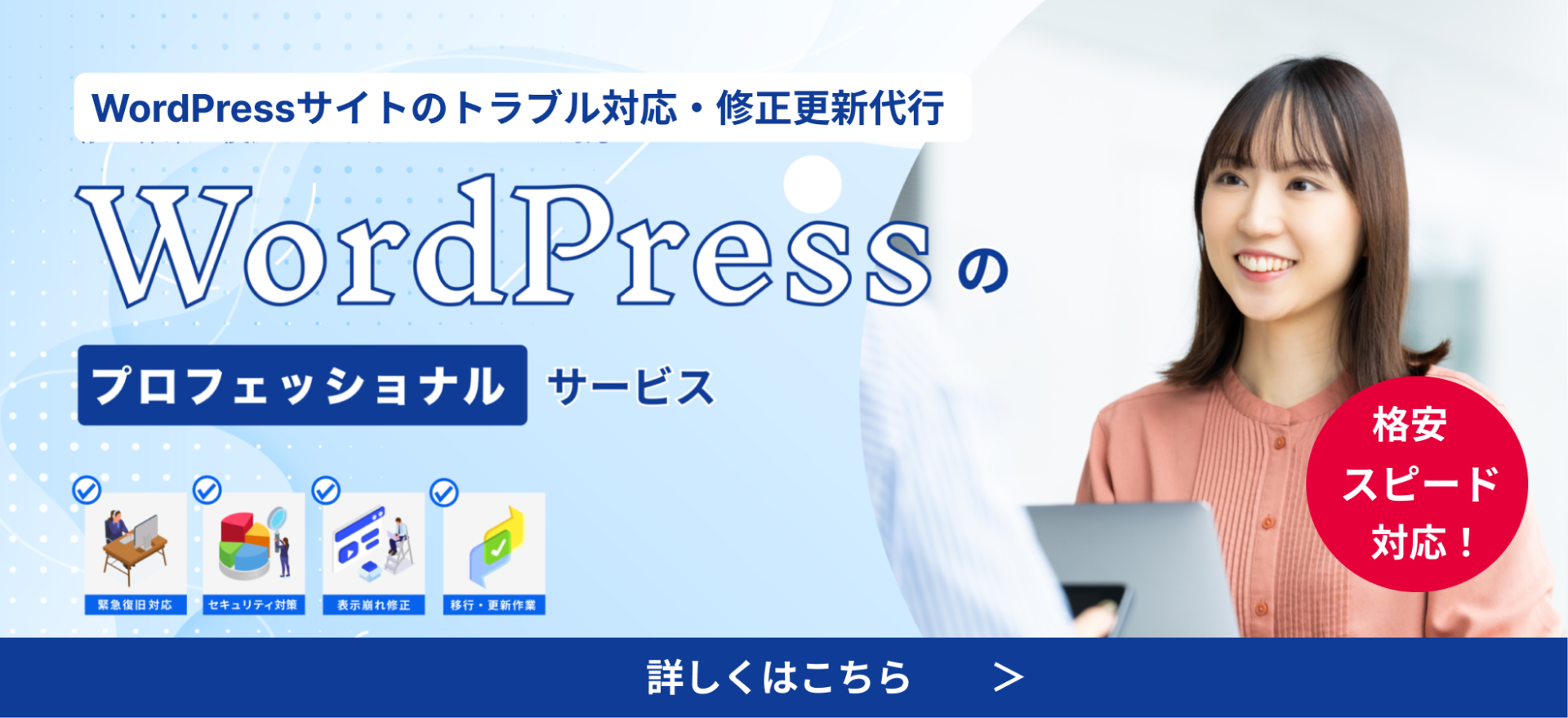 ECサイトなど直接ユーザーと金銭が発生する様な場合や、企業向けのWordPressサイトの場合は、ホームページ制作会社への修正、変更を代行業者に依頼しておくのが無難と言えます。